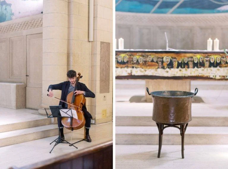 We kept the ceremony simple and focused the design on the dinner reception, where guests would be able to celebrate after. We had a professional cello player for the ceremony, which really took it to a whole new level! Quality music is always important to my clients, who really value art and music. In fact, for their wedding in 2018, we had a professional choir for their ceremony and a 12-person band for their reception!