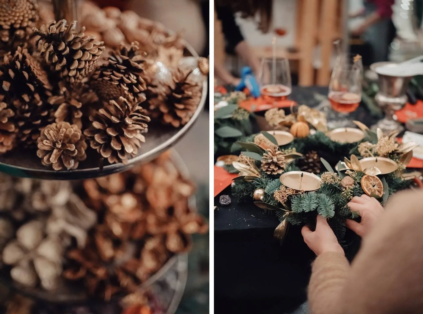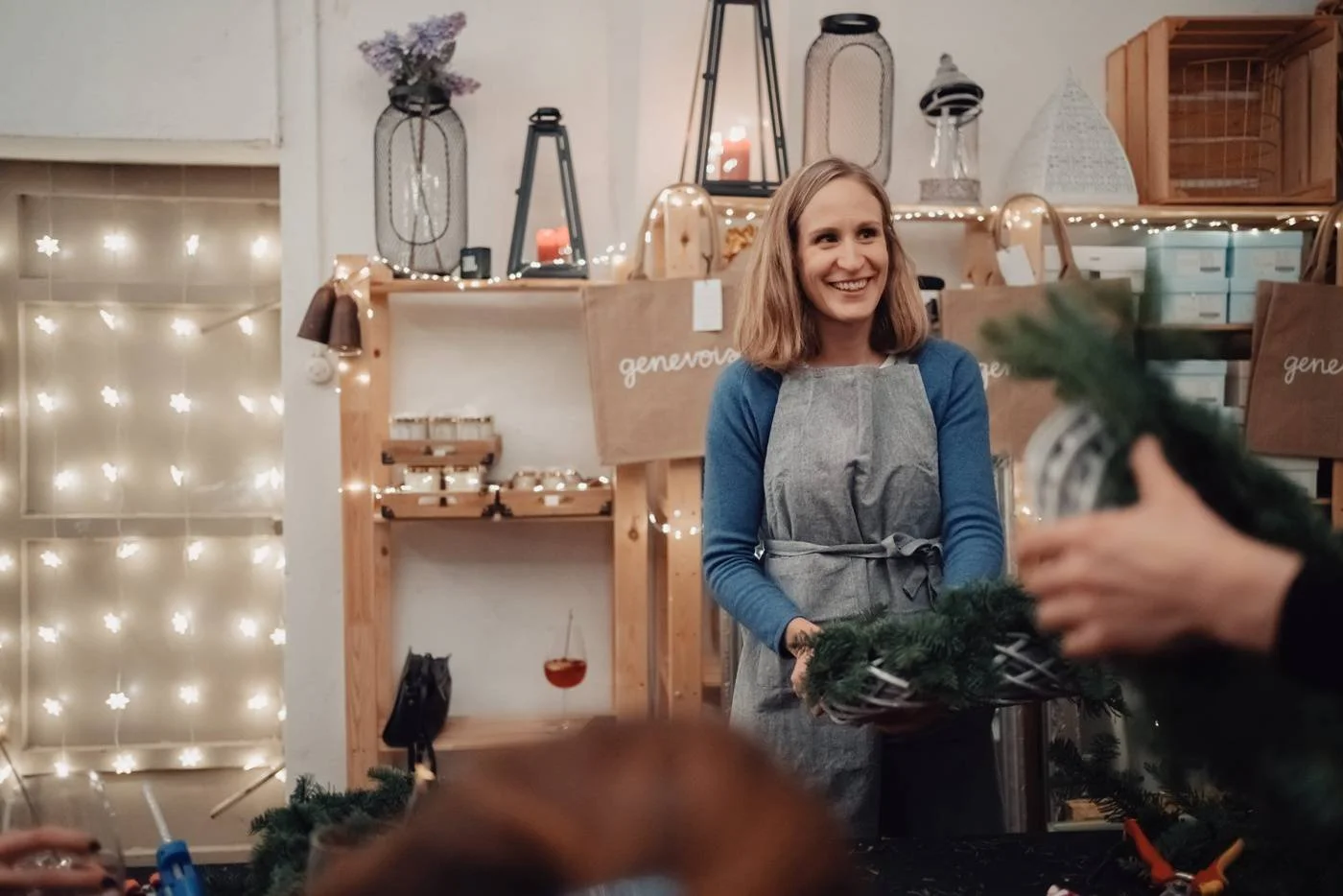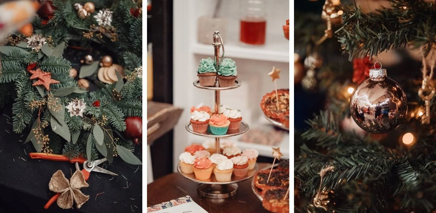 I’m delighted to announce that we’ll be hosting another round of Christmas wreath workshops this holiday season! As a Geneva event planner, there’s nothing I love more than cozy, festive fun. This will be our fourth year offering these workshops, and each year I look forward to them more and more! If you’d like to join us for a creative evening filled with sparkle, you can find all the details and workshop dates below.